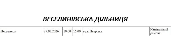 Графік відключення світла по адресах 27 березня, Веселинівська дільниця АТ «Миколаївобленерго»