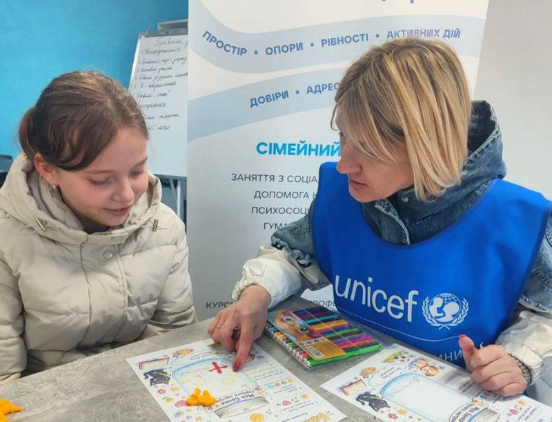 Представниця центру пояснює завдання дитині. Центр «Порада»