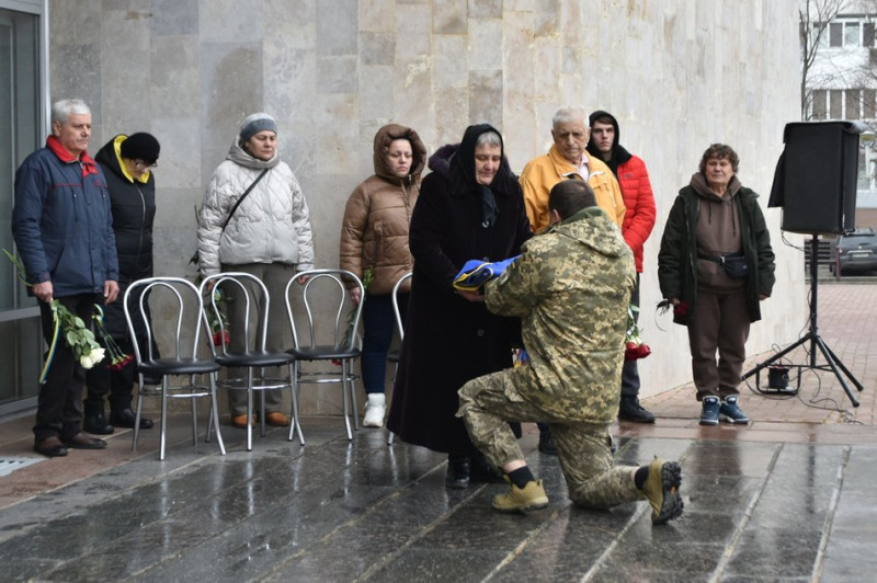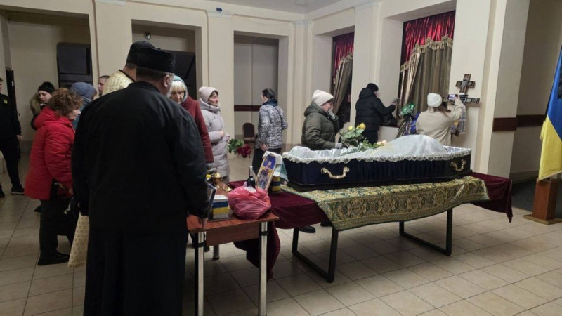 Попрощатися з чоловіком прийшли містяни, друзі, рідні та побратими. Майор Андрій Чорний передав матері загиблого державний прапор, яким було вкрито труну.