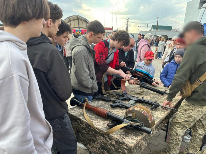 Вранці на музейній площі відкрили виставку, де представили зразки озброєння та техніки, які використовують українські військові, а також трофейне спорядження армії РФ. Серед експонатів — уламок керованої авіабомби завдовжки 160 сантиметрів, різні види стрілецької зброї, гранатомети та дрони.