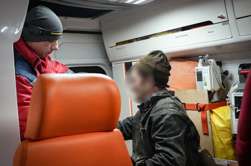 Чоловіку, травмованому в пожежі, надають медичну допомогу. ДСНС