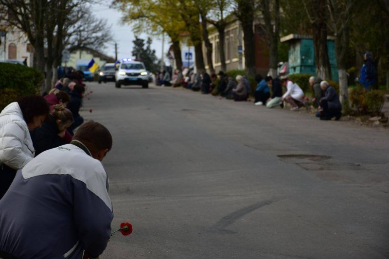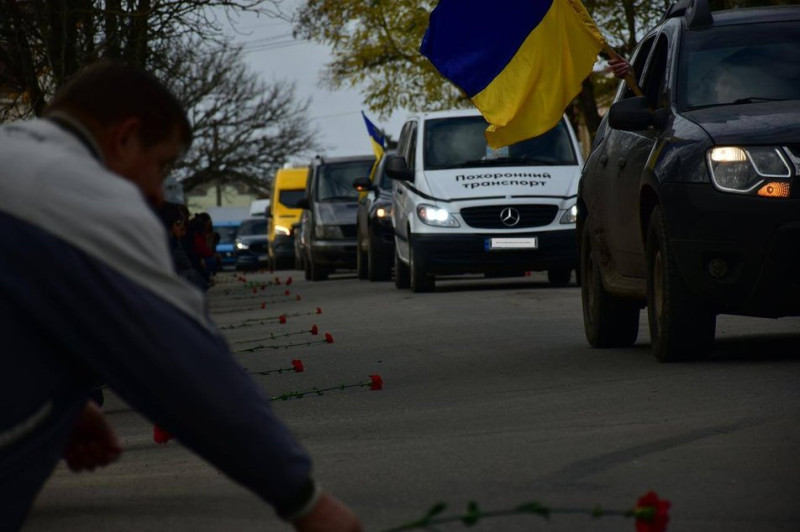 Тіло військового зустріли "живим коридором". Місцеві жителі встеляли квітами дорогу, якою Олександр повернувся додому — на щиті. Схиливши голови вони проводжали захисника, пише Кухта.