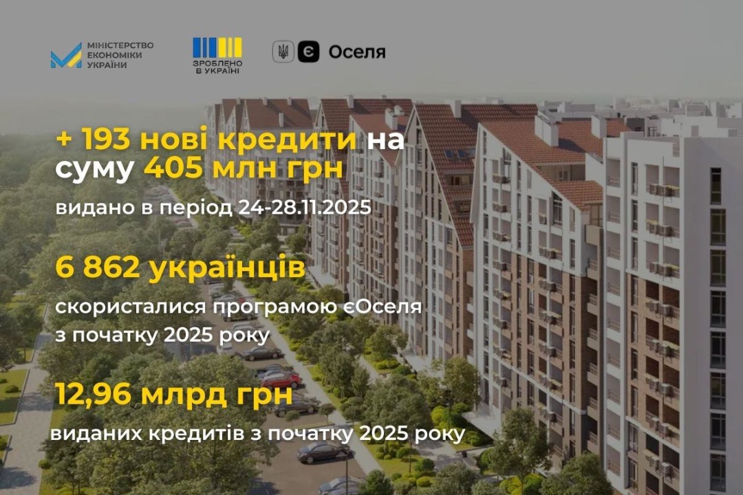Від початку 2025 року за державною програмою доступної іпотеки "єОселя" видано 6,86 тис. кредитів на загальну суму 12,96 млрд гривень.