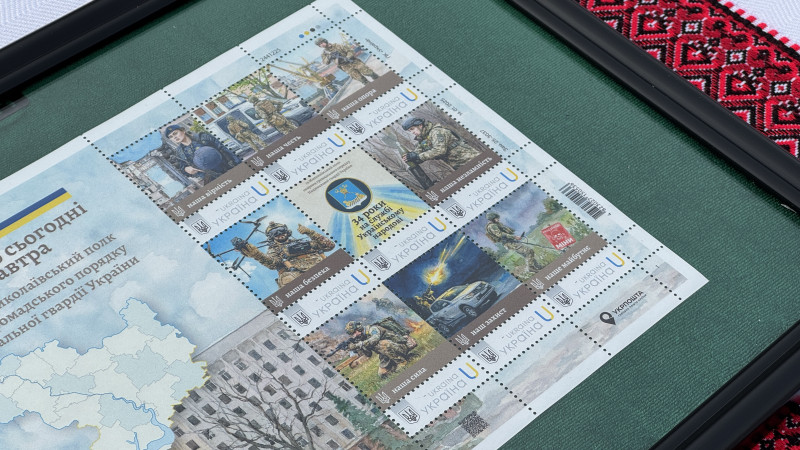 У Миколаєві 2 січня погасили марку, присвячену 34-річчю від дня створення 19-го Миколаївського полку охорони громадського порядку Нацгвардії України. На марках зобразили бойову роботу військовослужбовців, а на конверті — зруйновану будівлю облради.