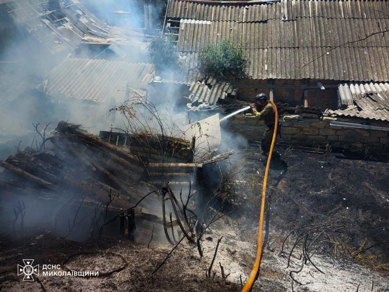 Через обстріл з боку РФ в Очакові зайнялися будинки та господарчі споруди, 1 липня 2024 року ГУ ДСНС у Миколаївській області