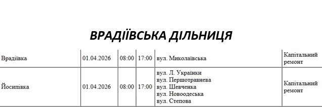 Графік на 1 квітня, Врадіївська дільниця АТ «Миколаївобленерго»