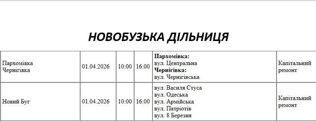 Графік на 1 квітня, Новобузька дільниця АТ «Миколаївобленерго»