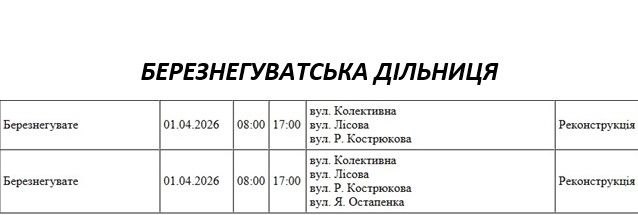 Графік на 1 квітня, Березенгуватська дільниця АТ «Миколаївобленерго»