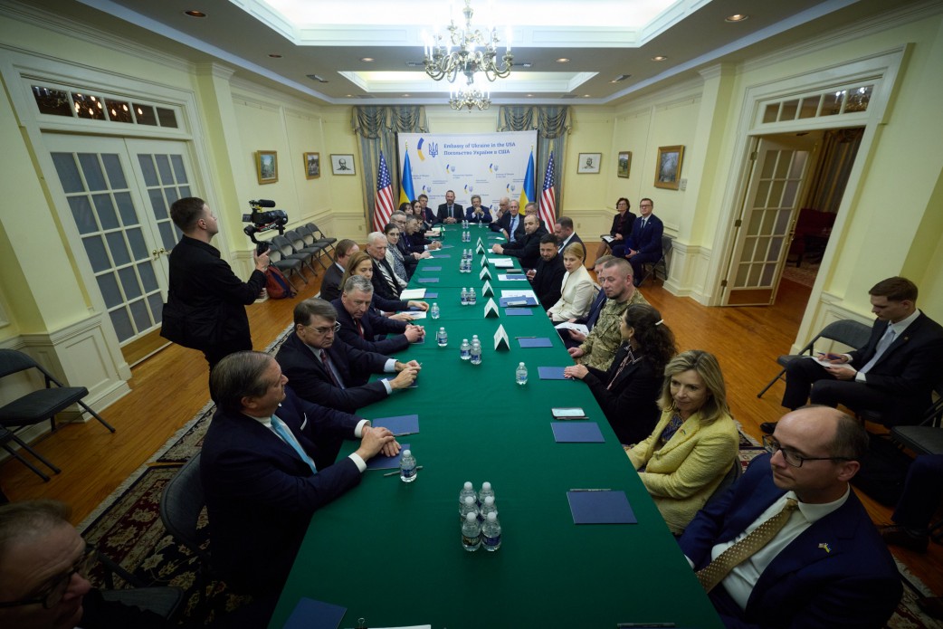 "Зустрівся з керівниками американських аналітичних центрів. Обговорили поле бою та речі, які можуть наблизити гарантований мир", — зауважив Зеленський.