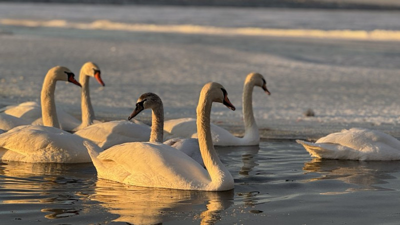 Лебеді на Південному Бузі в Миколаєві. Суспільне Миколаїв/Юлія Голокоз