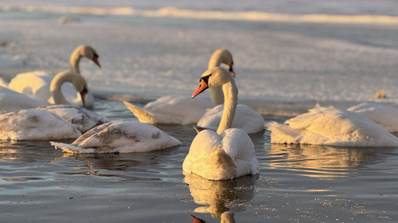Орнітолог каже, птахи також харчуються водоростями, тому обирають місця, де річка не замерзає. Там вони пірнають на мілководді та добувають рослинність. Зимують лебеді до весни, після чого розлітаються в очерети для гніздування.