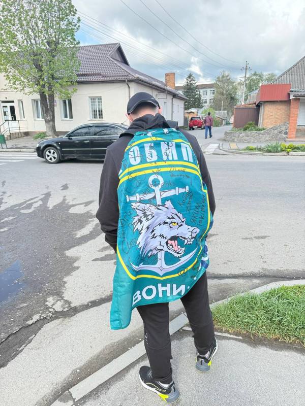 Владислав з прапором морпіхів. Фото з особистого архіву Владислава