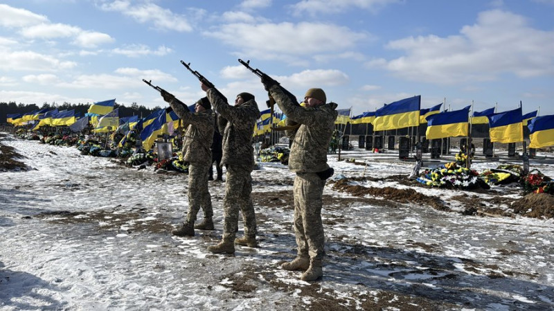 Військовослужбовці здійснюють почесний залп під час прощання із загиблим захисником на кладовищі. Суспільне Миколаїв/Валентина Гурова