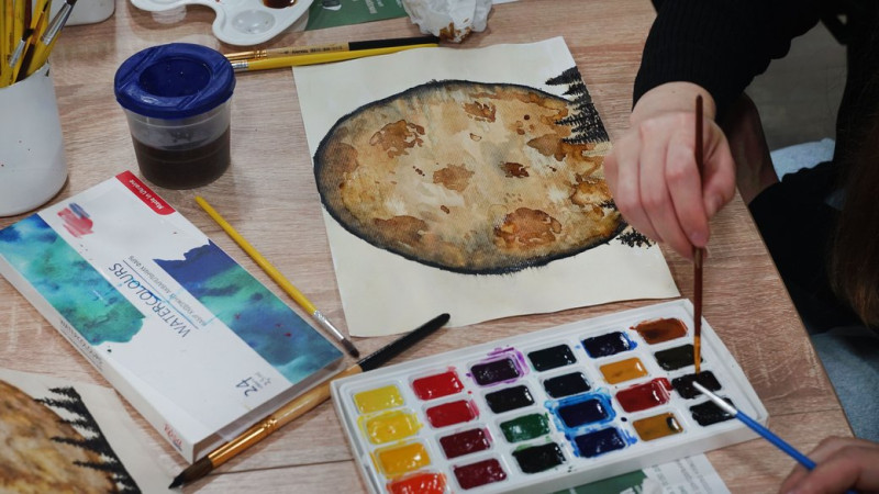 Поліціянтка дофарбовує малюнок кавою на арттерапії . Суспільне Миколаїв/Олександр Гордієнко