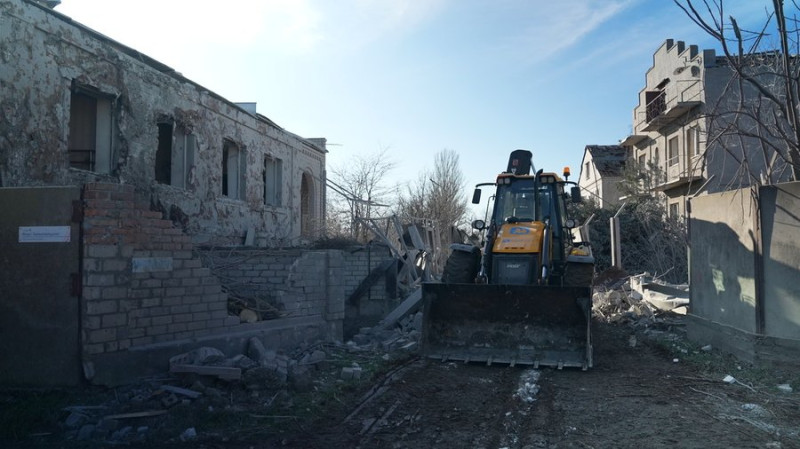 Спецтехніка прибирає уламки Суспільне МиколаївБогдана Будулуца